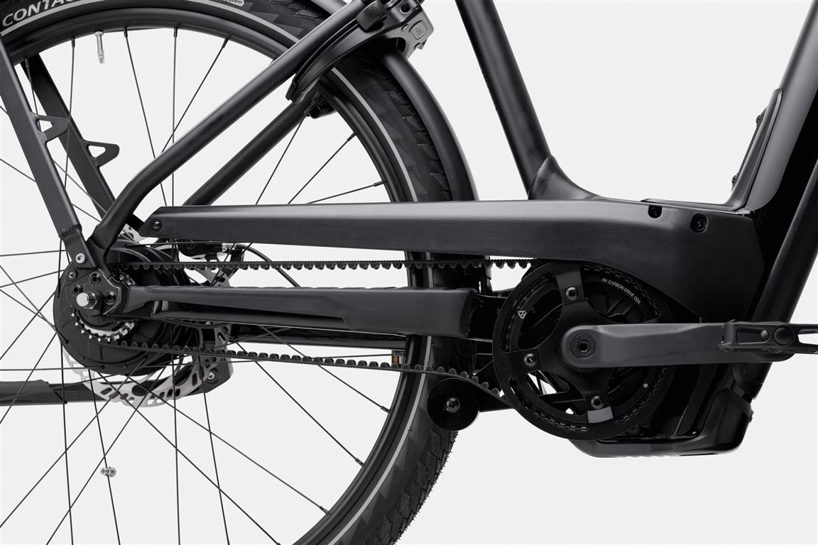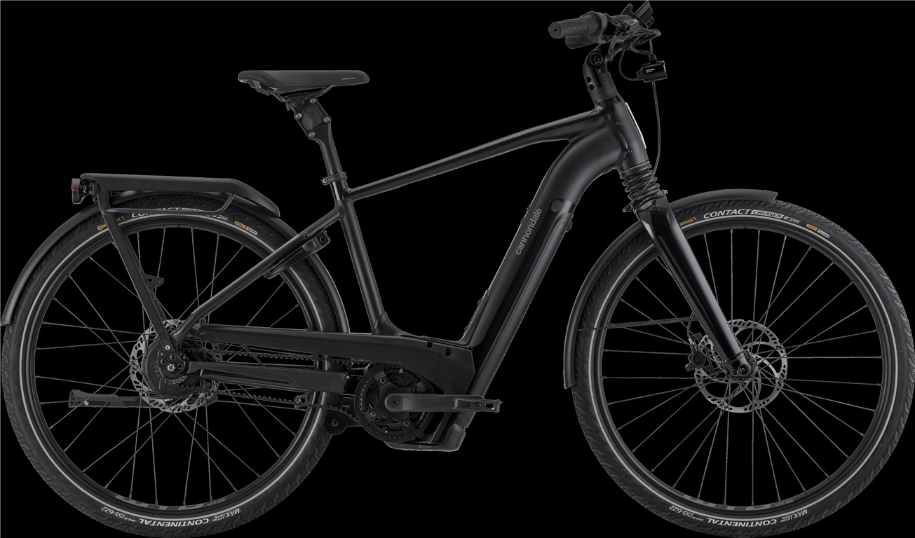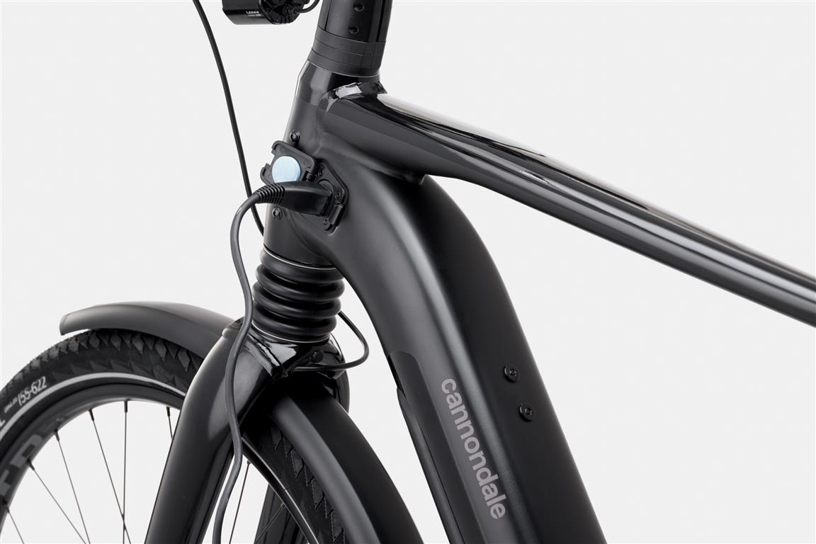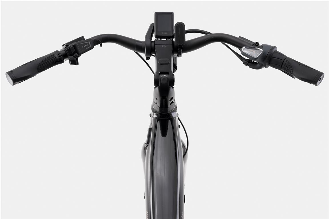 De Amerikanen hebben een lekker oversized aluminium frame geproduceerd, leverbaar in vier maten, twee kleuren en met lage instap en met een klassieke bovenbuis. Vooraan vinden we een verende voorvork. En die mag wel even extra genoemd worden, want het is de gloednieuwe HeadShok. Een in de balhoofdbuis geïntegreerde verende voorvork. Met een nieuw Quad Cage naaldlagersysteem wat ondermeer garant staat voor ècht soepele vering van 50 mm. Dit gecombineerd met de oversized vorkpoten, brede naafafstand en taps toelopende stuurbuis zorgt ervoor dat je zowel extra comfort hebt als een scherp sturende e-bike. Extra fijn als je op volle snelheid door de urban jungle cruist. De nieuwe Mavaro Neo 1 wordt aangedreven door het nieuwe ‘Smart System’ van Bosch. Dat bestaat uit een extra grote 750Wh accu, Performance Line CX motor, LED afstandsbediening en Kiox 300-display. Met een bereik van maximaal 175 km op een enkele lading -zo kun je nog eens een stuk wegtrappen. Bij de afmontage heeft Cannondale gekozen voor een zeer hoogwaardig pakket: comfortabele verende zadelpen, krachtige Magura CT 2- hydraulische schijfremmen, een Gates CDX riem in combinatie met een Enviolo Trekking naaf. Naar gelang de maat heeft de Mavaro Schwalbe Big Ben Plus (LG/XL) of Continental Contact Plus City (SM/LG) rubber. Verder nog zaken als een verstelbare stuurpen met telefoon aansluiting, Tubus rek, Curana spatborden en een Abus slot. Dikke Urban e-bike!