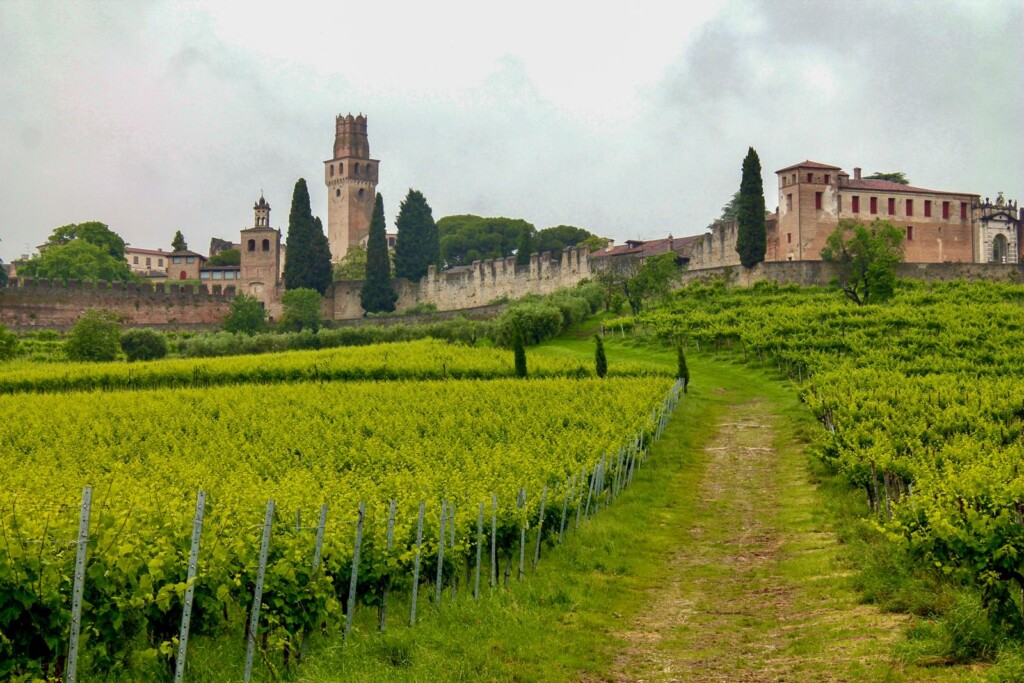 De adellijke familie Ciani Bassetti verwierf het kasteel begin 20ste eeuw, restaureerde het en plantte nieuwe wijngaarden. Tegenwoordig verhuren ze appartementen in de torens en in het hoofdgebouw, in Venetiaanse stijl ingericht met antiek meubilair. Baron Ciani Bassetti ontvangt ons hartelijk en nodigt ons uit voor een wijnproeverij: zo kan ik meteen kennismaken met mijn twee reisgenoten. We proeven ook zijn sprankelende prosecco ‘Baronessa Isabella’, genoemd naar zijn dochter – terwijl zijn zoon is voorbestemd de rol van volgende patriarch op zich te nemen.