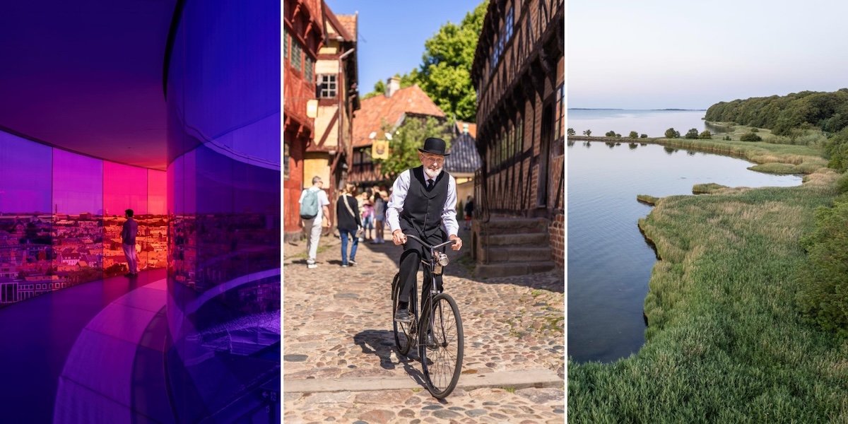 We volgen deze dagen de Fjordmino, een route van zo’n zestig kilometer langs de fjorden bij Horsens, met uitstapjes naar de eilanden Hjarnø en Alrø. We beginnen in Aarhus, de grootste stad van Jutland, die qua grootte doet denken aan Utrecht, maar architectonisch verrassender is. Het havengebied Aarhus C oogt modern en bijna futuristisch. Jongeren liggen er te zonnen aan de kade, springen in het koude water – ondanks de kwallen – en drinken daarna koffie of cocktails in hippe bars.